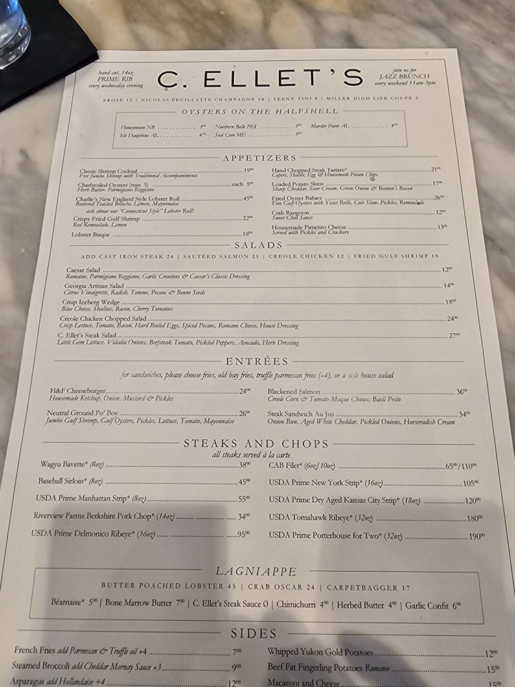 Welcome to C. Ellet's, a premier steakhouse and seafood destination nestled in Atlanta's vibrant Battery area. The moment you step in, the classy ambiance envelops you, setting the stage for an unforgettable dining experience. C. Ellet's boasts an extensive menu that beautifully marries rich, flavorful steak options with fresh seafood delights, making it ideal for both casual diners and special occasions.
